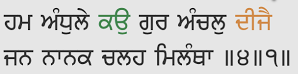 I am blind – O Guru, please let me grasp the hem of Your robe, so that servant Nanak may walk in harmony with you